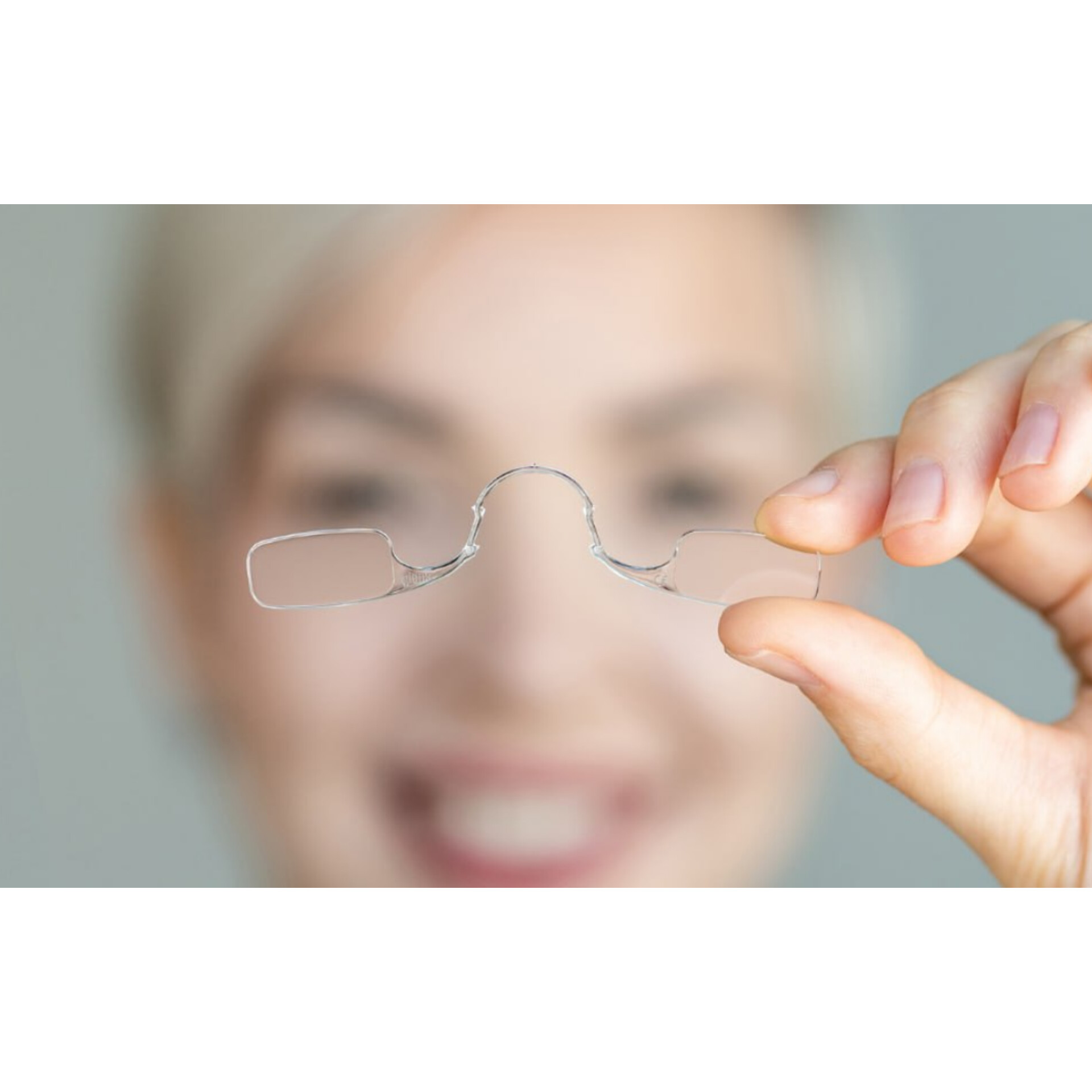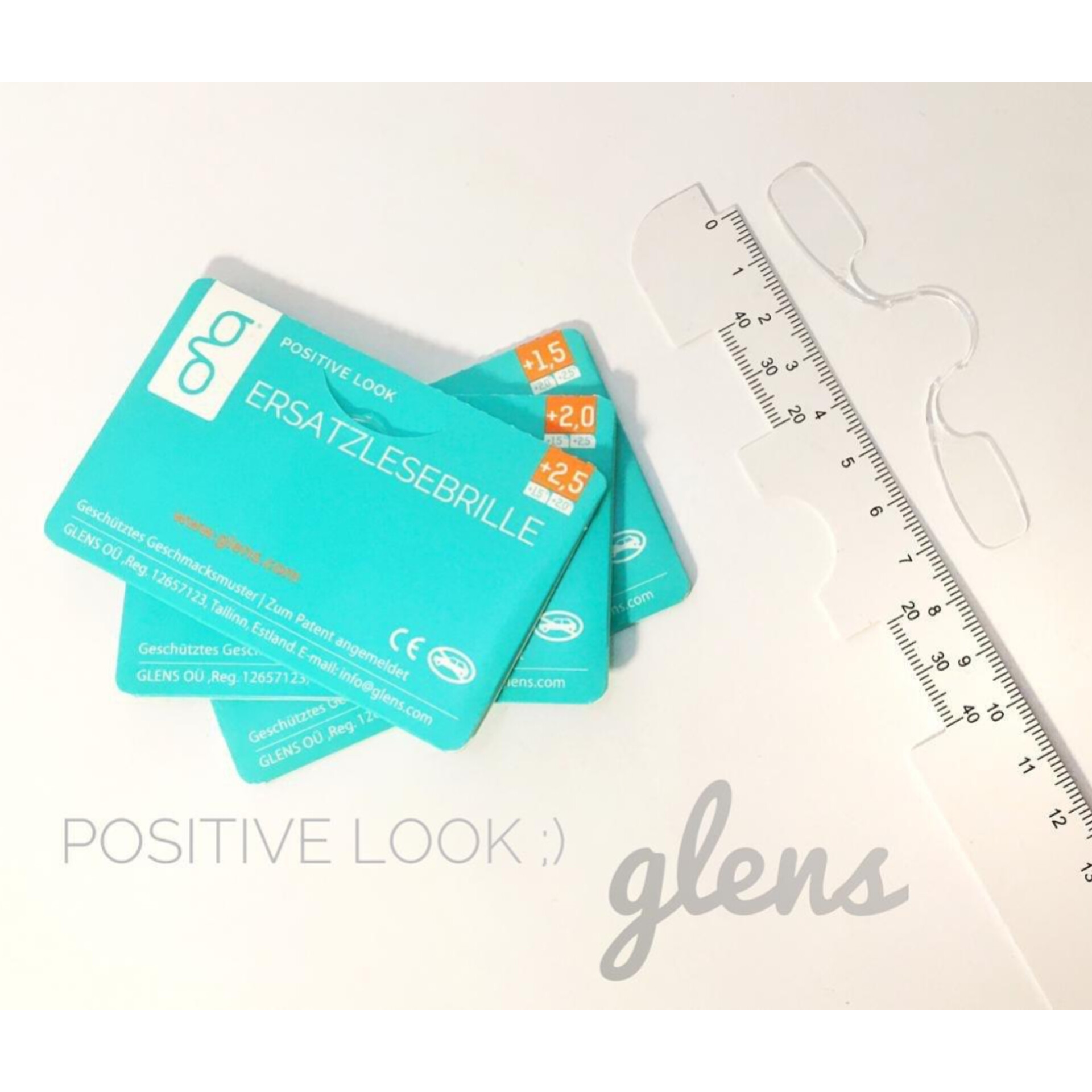 عینک مطالعه Glens ساخت کشور آلمان با وزن یک گرم مناسب هر صورتی تقریبا غیر قابل دید روی صورت است و می توانند همرمان با عینک طبی و آفتابی نیز مورد استفاده قرار گیرد. بسته بندی خاص این محصول که به اندازه یک کارت ویزیت بوده و مناسب برای قرار دادن در کیف پول کوچک، جلد موبایل، جیب شما و بین صفحات کتاب است